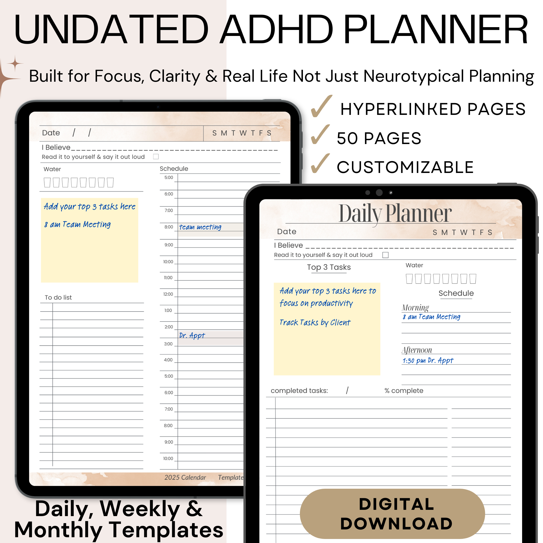 It’s undated, digital or printable and built for real-life ADHD brains. It includes: