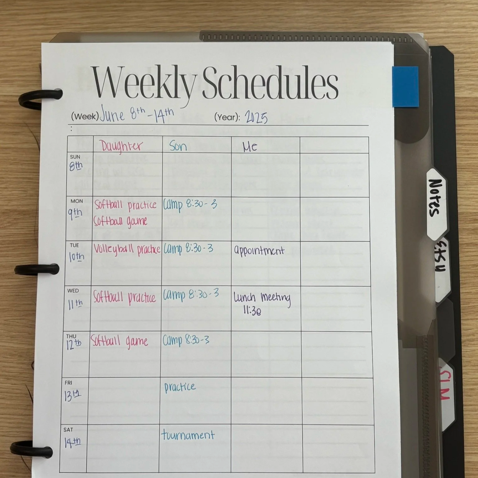 I may have already added schedules in my calendar.. but shit changes. And I don’t always remember to change it in my google calendar, then <insert chaos>. I go through 1 persons schedules first for the week & go through everything. I write down anything I (or they) have to do for that day.